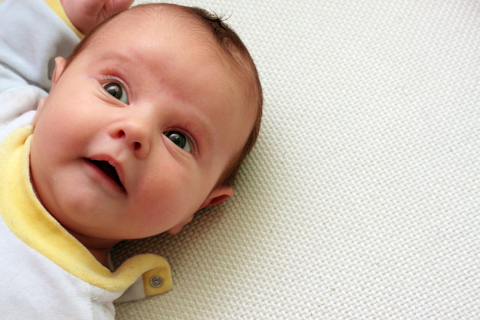 | L'espressione è piacevole, un misto di allegria e sorpresa tipica dei bambini così piccoli, perché tutto quello spazio libero a destra? frenesia dello scatto oppure "famolo strano"? |