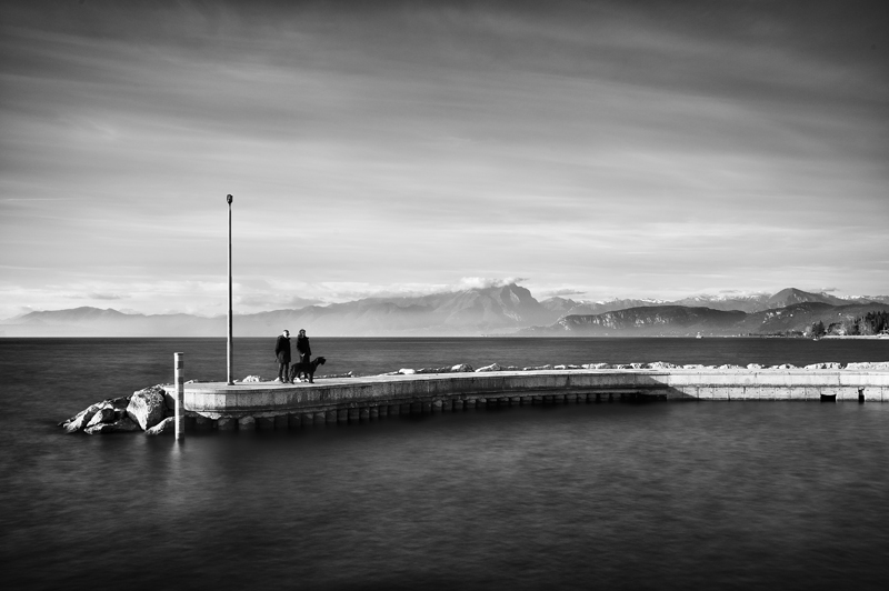 Un buon B/N con l'ottima scelta, a mio giudizio, dei soggetti con il cane che si stagliano sul molo che ha per sfondo un altro interessante panorama.  _________________