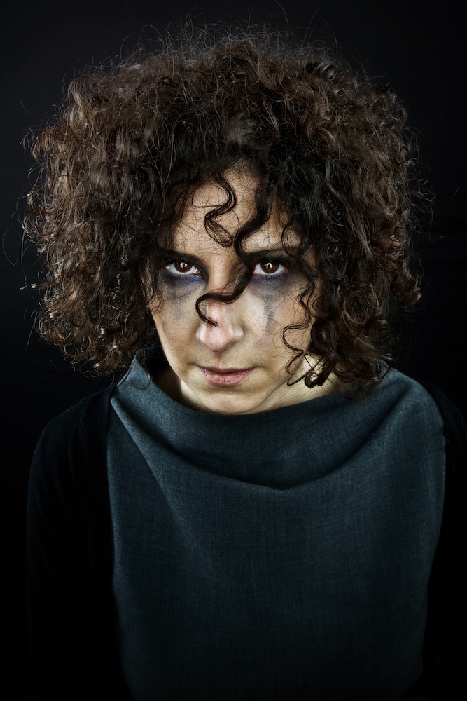Tutto; la posizione sottomessa ad un'inquadratura rialzata, la lucidità degli occhi, il trucco disfatto, la spettinatura, la luce omogenea, ma diretta, porta chi osserva questo ritratto a riconoscere l'evocazione da parte del soggetto delle sensazioni più amare. la frustrazione che trasuda da quello sguardo mi arriva dritta come un cazzotto nello stomaco.