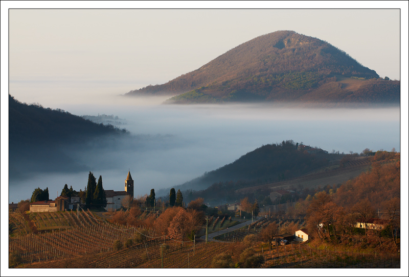 | Spesso d'inverno (con un po' di fortuna, se la nebbia non è troppo alta) i Colli Euganei offrono di questi paesaggi. Questo è stato colto direi con sapienza, tutto p al suo posto, ho riconosciuto i luoghi già dalla miniatura!