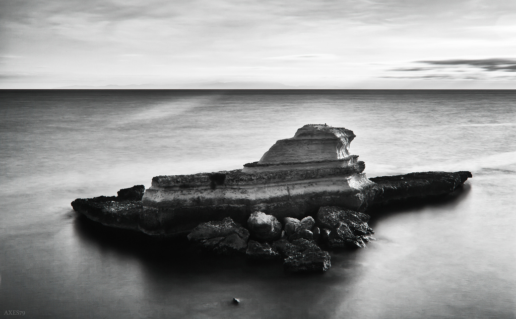 Niente male: sia per la particolare conformazione di quello scoglio, sia per la conversione in b/n che reputo fatta davvero bene e con stile!
