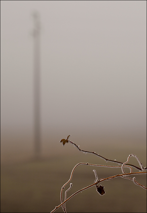 che dire... ci vuole coraggio a mettere un palo della corrente come sfondo. Il rametto bagnato in primo piano sembra un cavetto di metallo attorcigliato... per caso o per scelta?