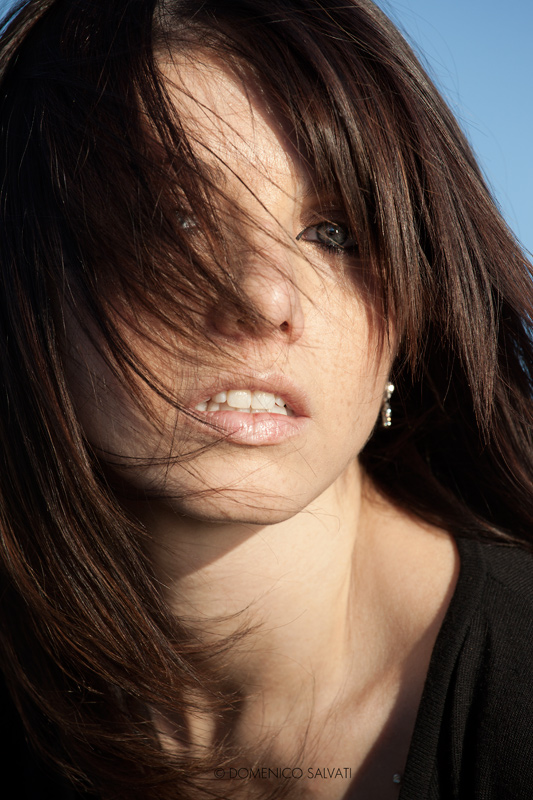 Preciso che non sono state scattate in una giornata ventosa ma sono invece foto in movimento, scattate proprio con l'intento di avere molto capelli sul viso, si andava a fortuna... |