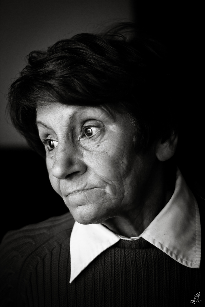il colletto bianco a contrasto con la maglia ed i segni del tempo sul viso (magnificamente naturali e portati orgogliosamente bene Wink ) sono ulteriori elementi caratterizzanti. la luce scelta è ottima nel sottolineare, con un pizzico di dramma, quella velata malinconia che traspare nello sguardo di mamma.