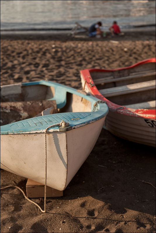 Dietro l'apparente semplicità dell'inquadratura cogli, con l'attento occhio della tua sensibilità, una serie di rimandi e corrispondenze: in primo piano, l'antropomorfico giacere delle due barche si sposa perfettamente con la pacata serenità dei giochi dei bimbi sullo sfondo, creando una momentanea fusione di due mondi, l'animato e l'inanimato, accomunati da un'identica categoria di giudizio sostanziale ed estetico.