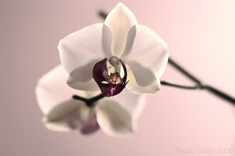 Questa bella Orchidea la vedrei meglio con un pelo di luminosità in più sul labello, si può fare con un piccolo pannellino senza alterare l'illuminazione retrostante. Aggiungerei una leggera inclinazione verso dx della fotocamera per sfruttare maggiormente la diagonale, dando così maggior forza all'immagine. |