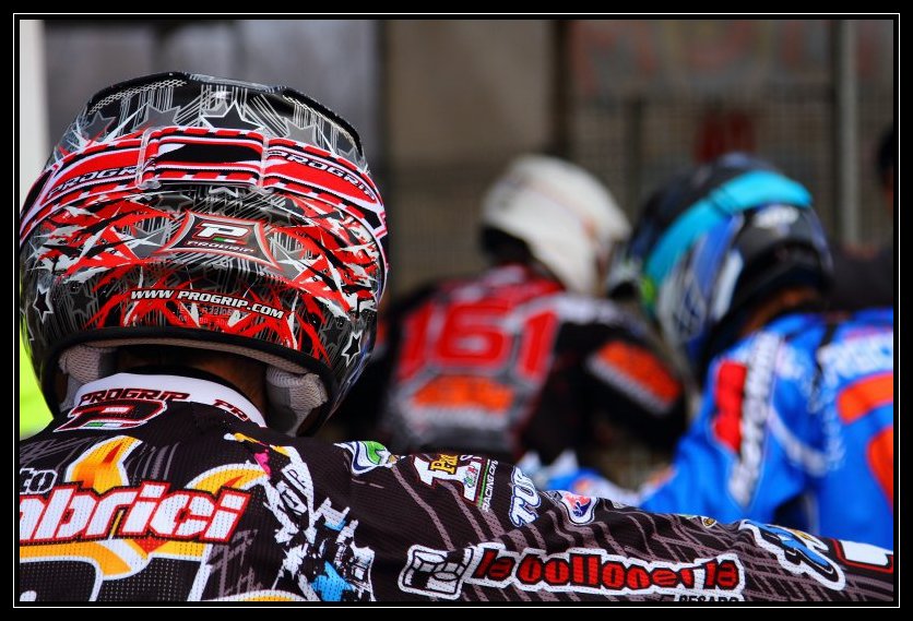 Dall'abbigliamento ai dettagli....con un buon sfocato che mette in successione gli atleti da sembrare in partenza per la gara...
