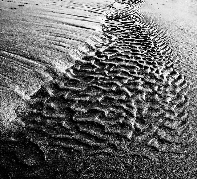 ottima come tono di bn, inquadratura abbastanza valida,anche se avrei rifilato la parte alta che non aggiunge molto.dove il disegno sulla sabbia torna ad allargarsi.
