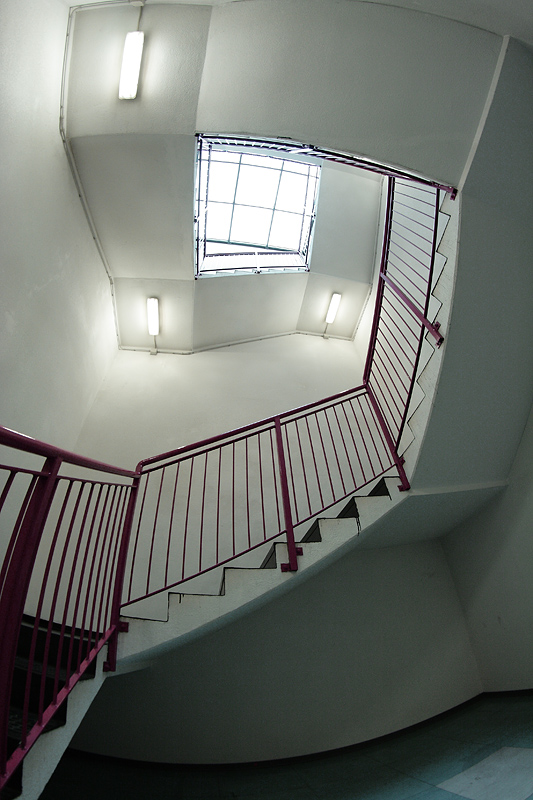 Da una semplice rampa di scale hai tirato fuori un ottimo esempio di foto di architettura. Mi piace sempre di più il tuo fisheye. Grande amico.