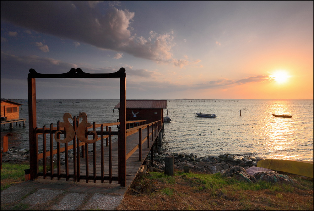 paesaggio molto bello...condivido sul dubbio della capanna a sx....sarebbe altresi interessante sfruttare in termini di studio il cancellato pontile per dare un ideale ingrsso al paesaggio...magari su basi dinamiche o prospettiche..sicuramente da ritornarci....ciao.... Ok!