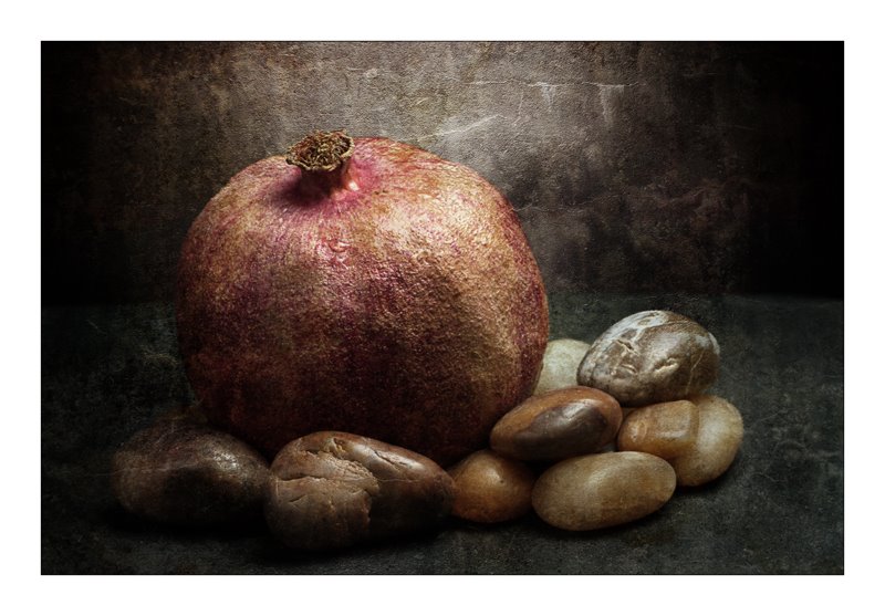 L'insieme è, come sempre, molto buono nella resa generale, nell'uso della luce, nel trattamento. Ma stavolta trovo l'accostamento tra melograno e sassi abbastanza forzato e la composizione con cui sono distribuiti gli elementi sulla scena eccessivamente "costruita" rispetto ad altri tuoi lavori. Personalmente preferisco Melograno #1.