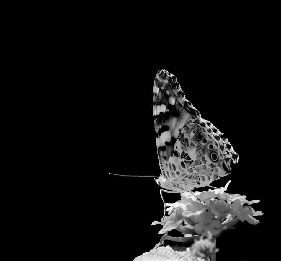 In post produzione ho scontornato la farfalla e lo sfondo con i livelli l'ho portato ad un nero assoluto , dato che era già Verdone , con la conversione mi e' sembrato più' ovvio fare così'.....