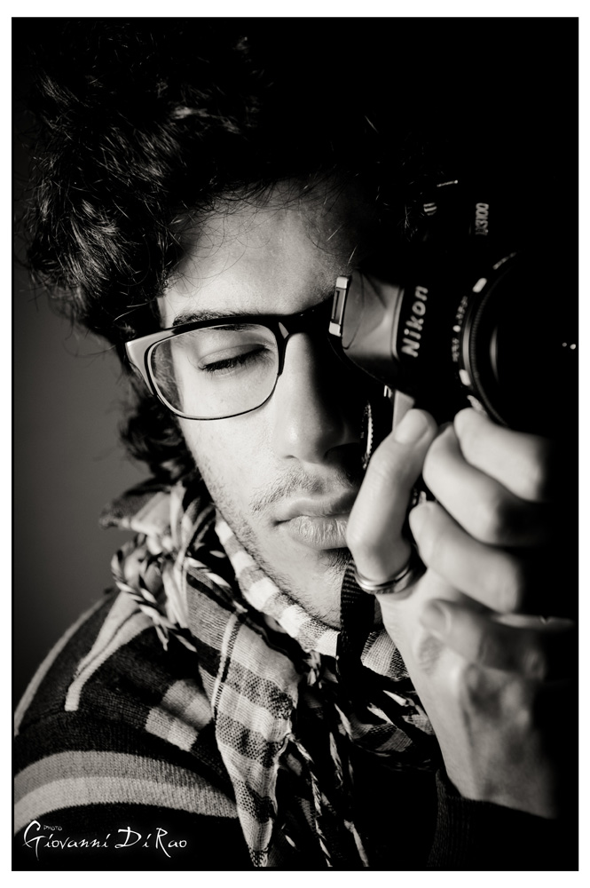 Tecnicamente è un ritratto , ben focheggiato e con un bianco e nero ben impostato. Magari mi permetto qualche perpessità sulla scelta della inquadratura sul soggetto. Il ritratto mi, ci deve raccontare qualcosa del suo protagonista e già qui sorge un piccolo problema. Una scelta classica quella del fotografo dietro la fotocamera. Ma al volto in parte celato si aggiunge la intercapedine degli occhiali oltre la lente dell'obiettivo. E l'occhio dalla palpebra chiusa ,che cela lo sguardo, aggiunge ostacolo all'ostacolo. Giò, involontariamente, pare assopito dietro al mirino, più che, e credo sia quello che volevi trasmettere, attento e preso dal suo lavoro.