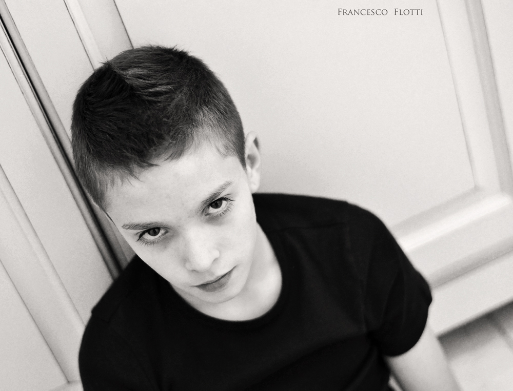la composizione è strana e la "sento" sbilanciata in basso, ma mi piace parecchio; crea una sorta di tensione nell'osservare l'immagine. bel bn asciutto. mi piacciono molto i toni chiari della porta dietro Federico. ora mi chiedo (e ti chiedo): una luce più laterale, atta a drammatizzare maggiormente la scena, non avrebbe giovato alla sensazione che restituisce questo tuo ritratto?
