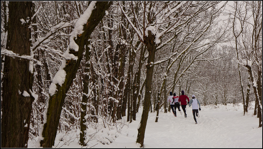 I valorosi, ripresi di spalle, anonimi e così ben contestualizzati nel bianco paesaggio, portano ad una lettura concentrata più sull'atto sportivo e sulla location che sull'identificazione degli stessi....