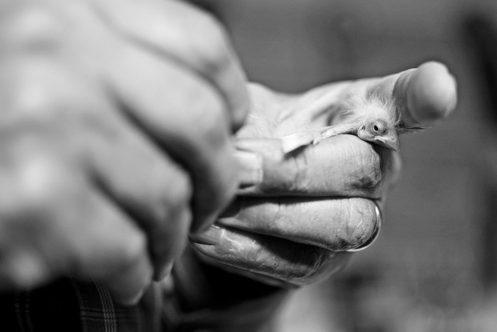Una tenerezza infinita per la piccola creatura nelle possenti mani...