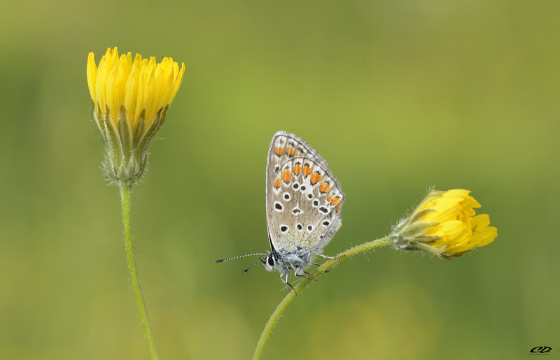 Indubbiamente simpatica. La presenza dei due fiori controbilanciano la centralità del licenide.