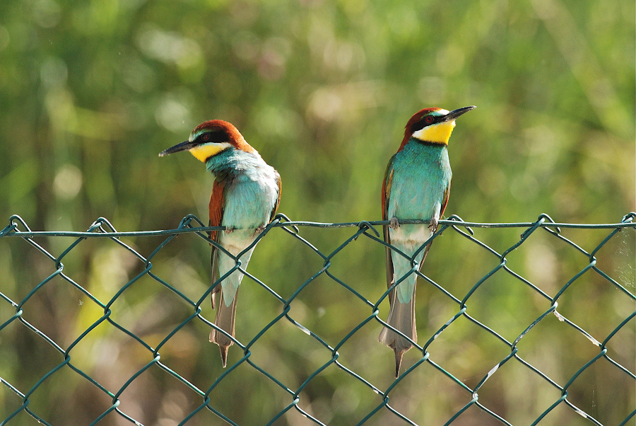 Grazie Rossella! Sono dei gruccioni, grandi mangiatori di insetti, che tornano da noi dopo la migrazione africana. Fanno i nidi su pareti verticali sabbiose, in genere, e il nido si riconosce perché è un grosso buco circolare. Li ho ripresi a Civitanova Marche Alta, provincia di Macerata, versante adriatico.  _________________ "L'unico rapporto 1:1 che conosco è: 1 possibilità per il soggetto di scappare, 1 probabilità per me di riuscire a fotografarlo" (Ribes)