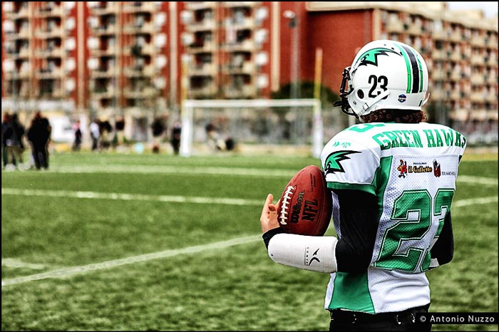 In realtà questa è stata la mia prima esperinza in quanto a fotografia sportiva e come se non bastasse mi sono ritrovato a scattare ad una partita di football, dove non conoscevo neanche le regole base di questo sport, ma nonostante tutto sono rimasto affascinato sia dallo sport in se, sia dall'affiatamento di questa squadra e dalle loro "regole d'onore".
