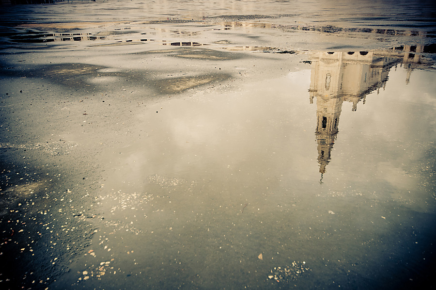 Mi piace! La bella cattedrale sembra immergersi nelle acque, galleggiando tra le gradevoli tinte pastellate.