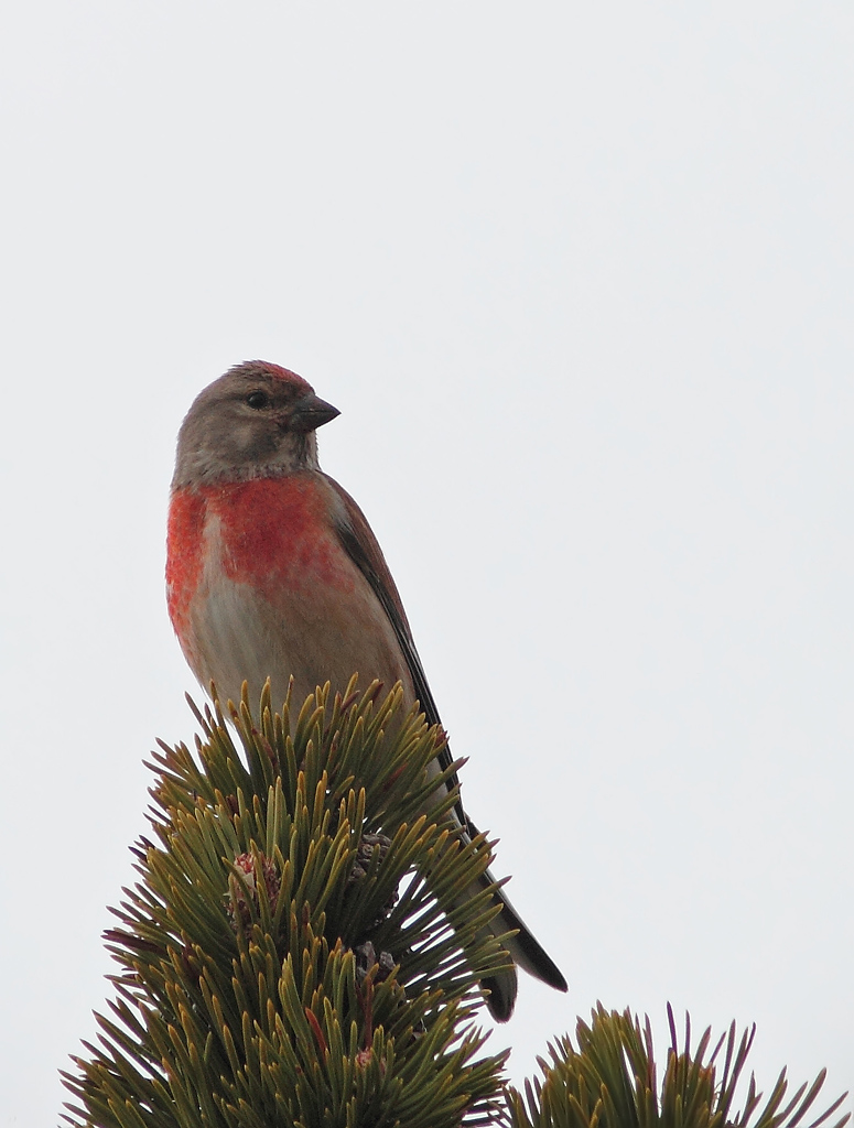 Un bel fanello sul pino mugo ...solo un po' di rammarico per il fatto di essere in controluce esasperato.