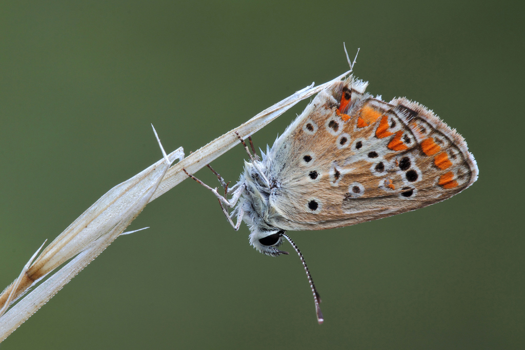 bella foto e gran dettaglio della licenide, buona anche la composizione...trovo un po troppo saturi gli arancioni, nel complesso un ottimo lavoro
