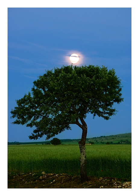 Solitario, malinconico alberello che sembra soffrire di solitudine... come compagni di vita solo il grano e quell'unico papavero, un suo simile c'è ma è laggiù, troppo lontano...