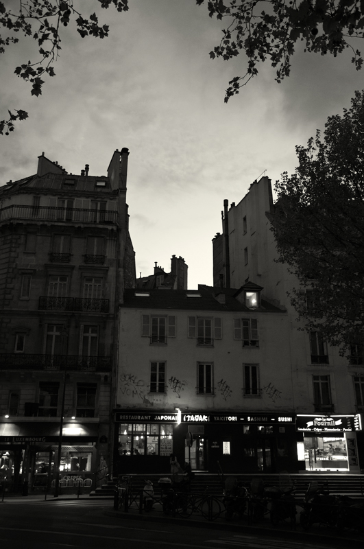 Non che la scena non sia priva di una certa atmosfera. Le linee cadenti disturbano un po'; la parte bassa, poco leggibile, poteva forse essere ridotta in fase di inquadratura, dando ancora piiú spazio al cielo. Peccato che non ci fossero piú finestre illuminate nellaparte alta dei palazzi, specialmente in quello a sx.