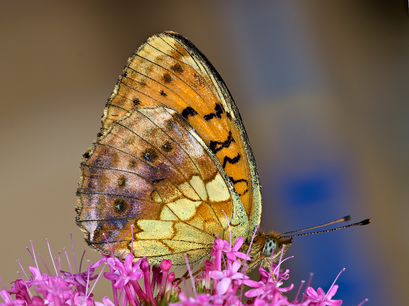 Piacevolissimi i colori di questa farfalla. Il rammarico è che un simile splendore sia leggermente nascosto dal suo posatoio.