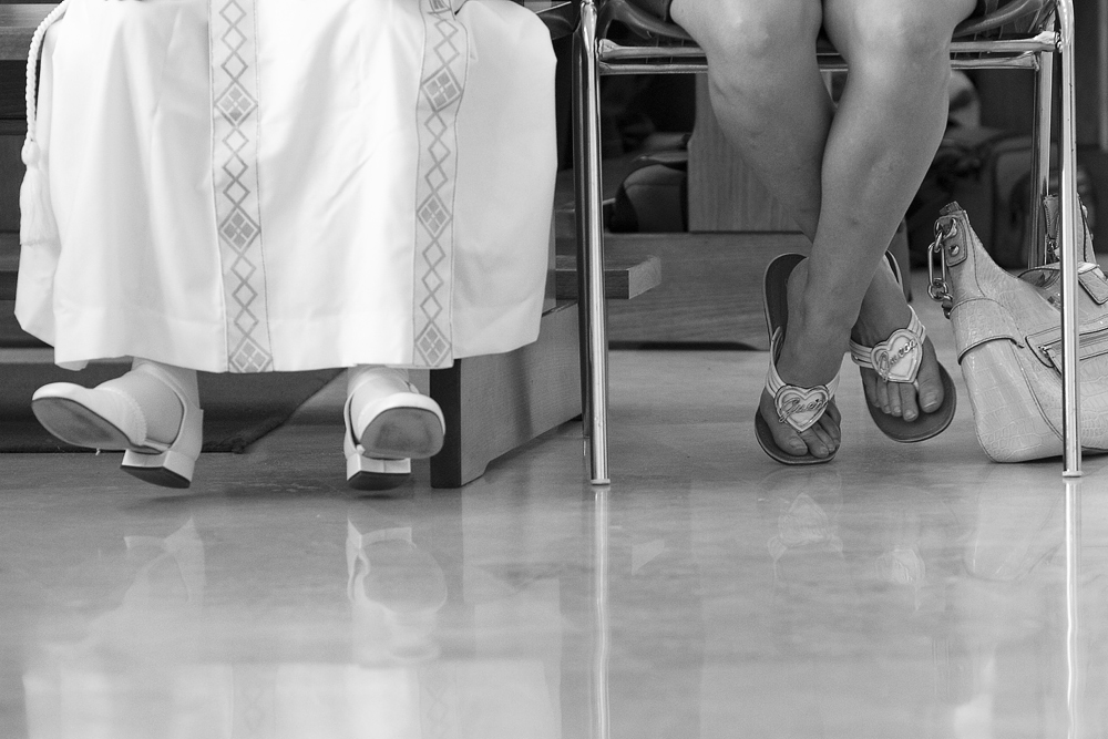 Benvenuta sabrina, hai isolato (forse un po' stretto il taglio sopra) due paia di gambe opposte nell'aspetto ma che parlano la stessa lingua: le religiose vestite e calzate esprimono l'attesa solo con lo sgranchirsi dei piedi; le laiche nude e cuoresposte si incrociano prevedendo tempi lunghi.