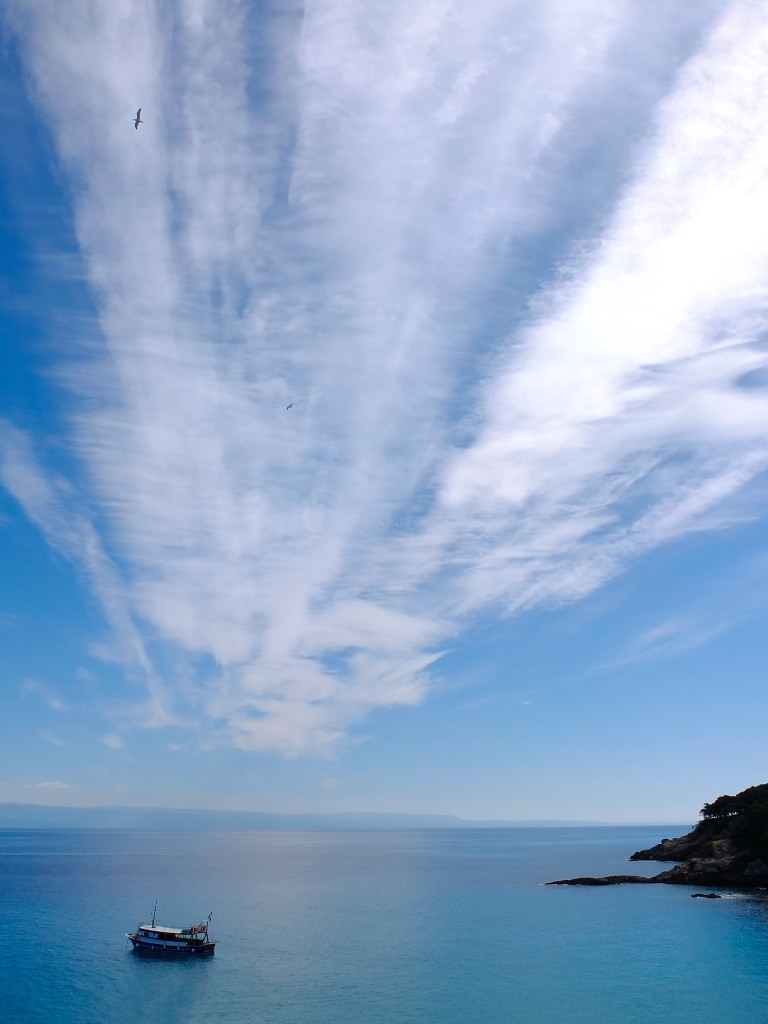 Bellissimo scenario, cielo reso molto bene e con delle nuvole ottimamente pennellate che sembrano convergere nel punto dove si trova l'imbarcazione. Gli elementi sono tutti al posto giusto a bilanciarsi a vicenda e a dare senso ad ogni angolo dell'immagine. Molto belli i riflessi sull'acqua. Tutto concorre ad evocare un paesaggio di serenità in un tempo immobile e silenzioso. Trovo come unica nota stonata l'orizzonte che appare impennarsi sulla destra (ma si risolve in un attimo ).