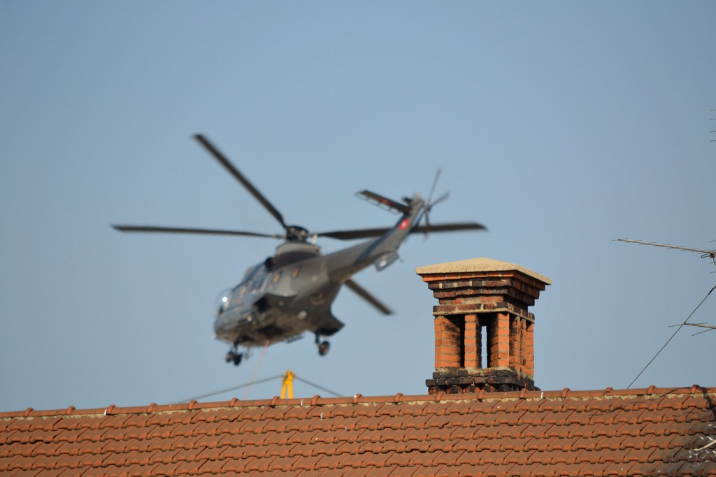 a voler essere sinceri è il comignolo ad essere a fuoco, l'elicottero t'è scappato.