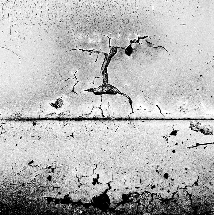 | Interessante la matericità delle texture, profondamente ricalcate attraverso il b/n. Poco mi convincono, invece, a mero gusto personale, le "effluorescenze" bianche a contorno delle crepe, dalla riga orizzontale in su. |
