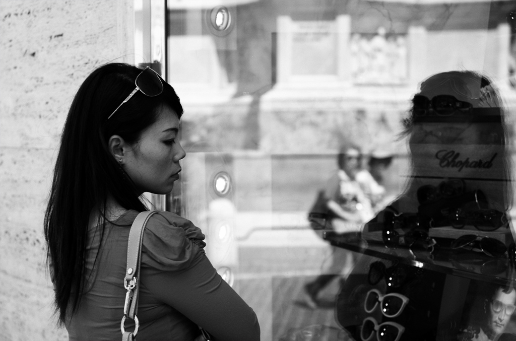 Non arriva subito, ma quando arriva lascia davvero di stucco!. Complimenti per l'occhio. Peccato che le condizioni di luce non riescano ad accentuare maggiormente il "magico riflesso"e peccato che quei due "disturbatori di street" stessero passando proprio in quel momento...
