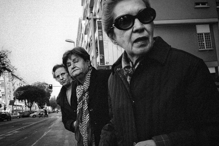 | Colto l'attimo! Le tre signore rimandano chi osserva a fantasticare su cosa sia il centro del loro interesse...ma poi sono riuscite a prenderlo l'autobus? |