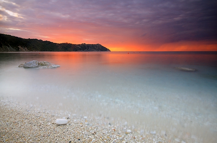 Come ti hanno già detto è un bel classico. Io provo a dire la mia, avrei invertito le parti mare/cielo. Avrei dato più spazio al cielo sicuramente più interessante del primo piano, effettivamente povero.
