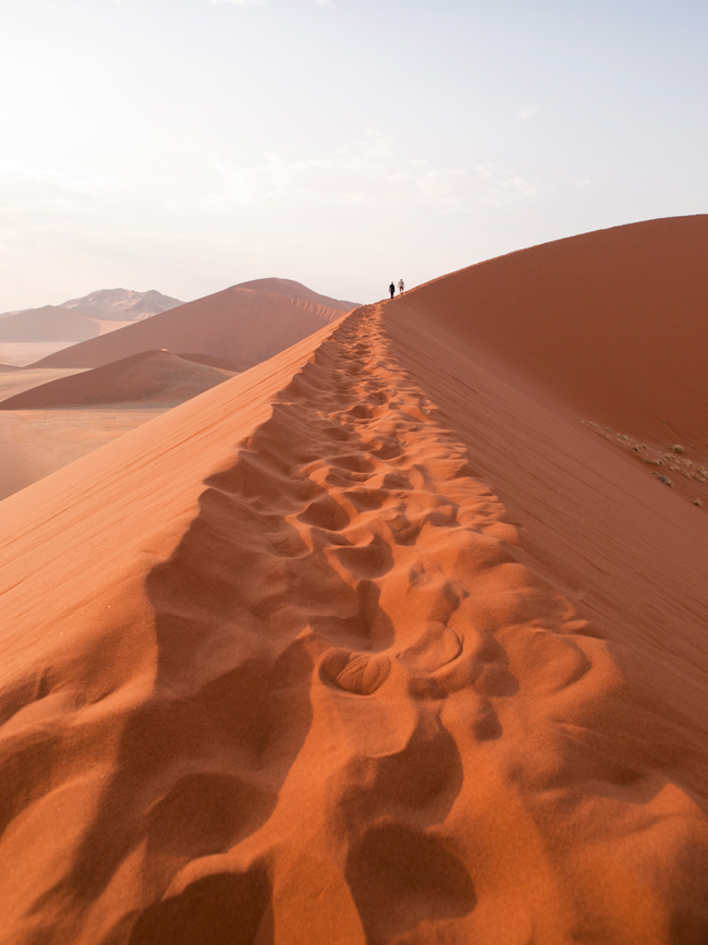 ero sulla duna 45, nell'area di Sossusvlei ...Io sono andata in settembre, la mattina entro le 9, e non c'era vento e nemmeno caldo...