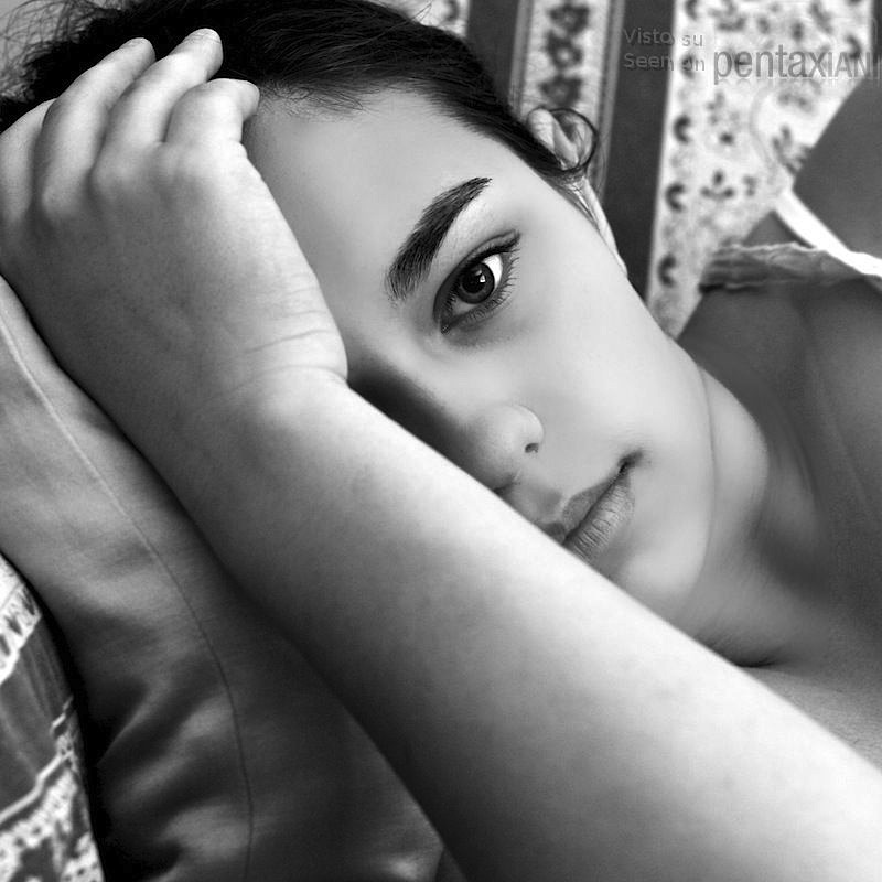 il frame è tagliato in due dalla diagonale offerta dall'avambraccio di lei che va a celarne anche metà del volto. romantica e misteriosa. mi permetto di attenzionarti la post operata sul viso che appare un po' invadente. si nota una quasi totale assenza di texture cutanea che torna presente sotto l'arcata sopracciliare e sotto la palpebra inferiore ed ancora dalla base del collo alla porzione di spalle presente nel quadro. _________________ Salvatore