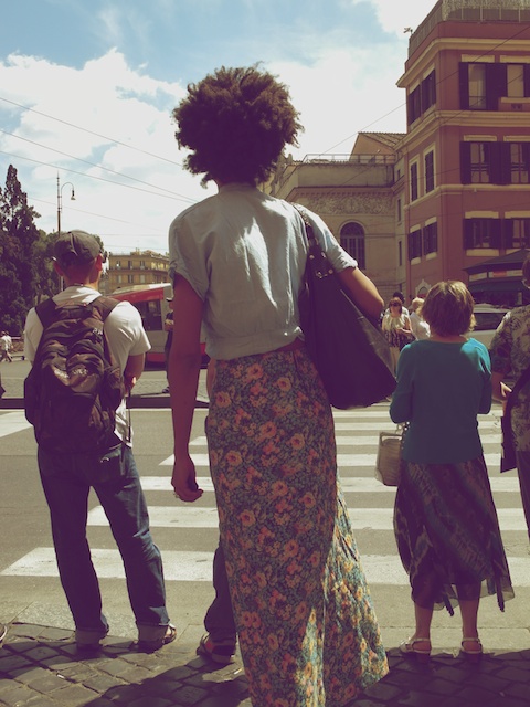capigliatura, pattern della gonna, gestione del colore, danno alla foto un sapore retrò, quasi anni 70'. Mi piace anche la noncuranza dell'inquadratura...