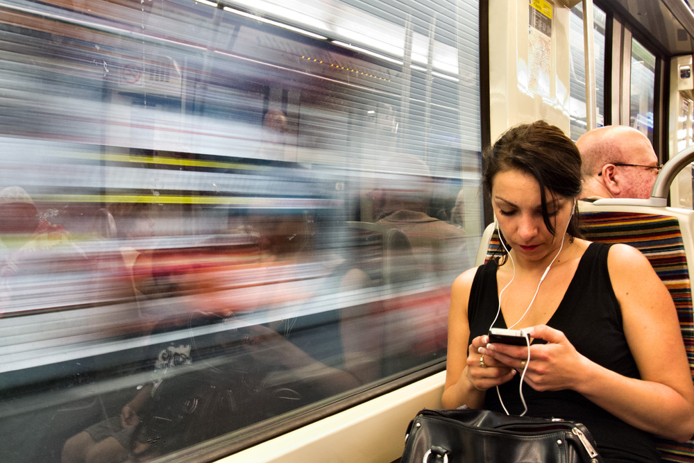 sembra quasi che la tapezzeria del sedile si riflette luminosa sul riflesso del treno in corsa. giocata sul contrasto stabilità/mosso.