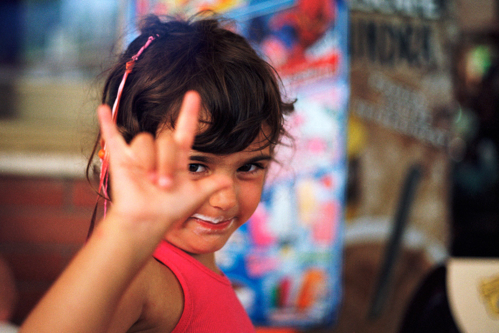 Margherita aveva appena imparato il gesto delle rockstar, e adolcita da un buon gelato, mi ha regalato un bel (i love you).
