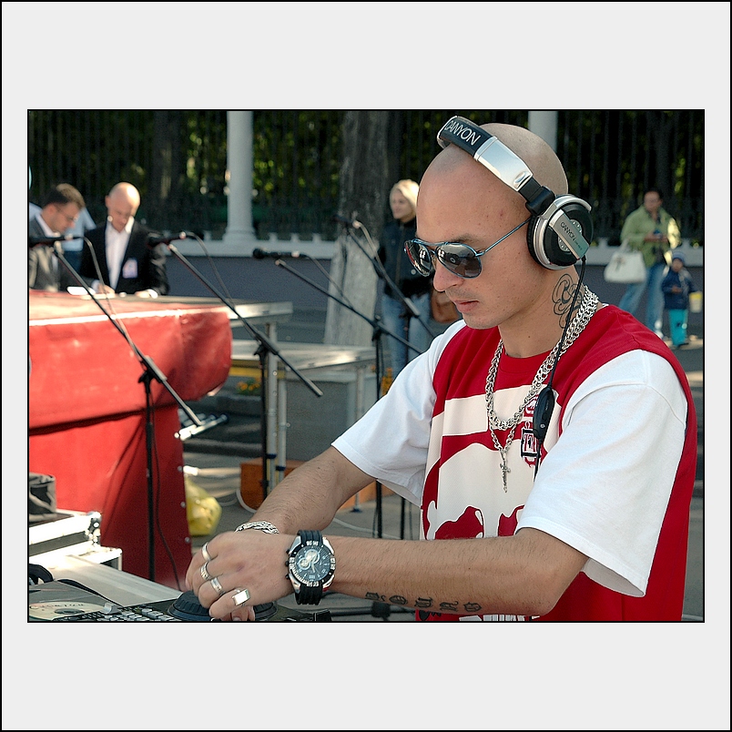Il DJ, se fosse stato ripreso in una qualsiasi discoteca italiana, sarebbe da considerarsi riguardo al look più che normale, ne convengo.