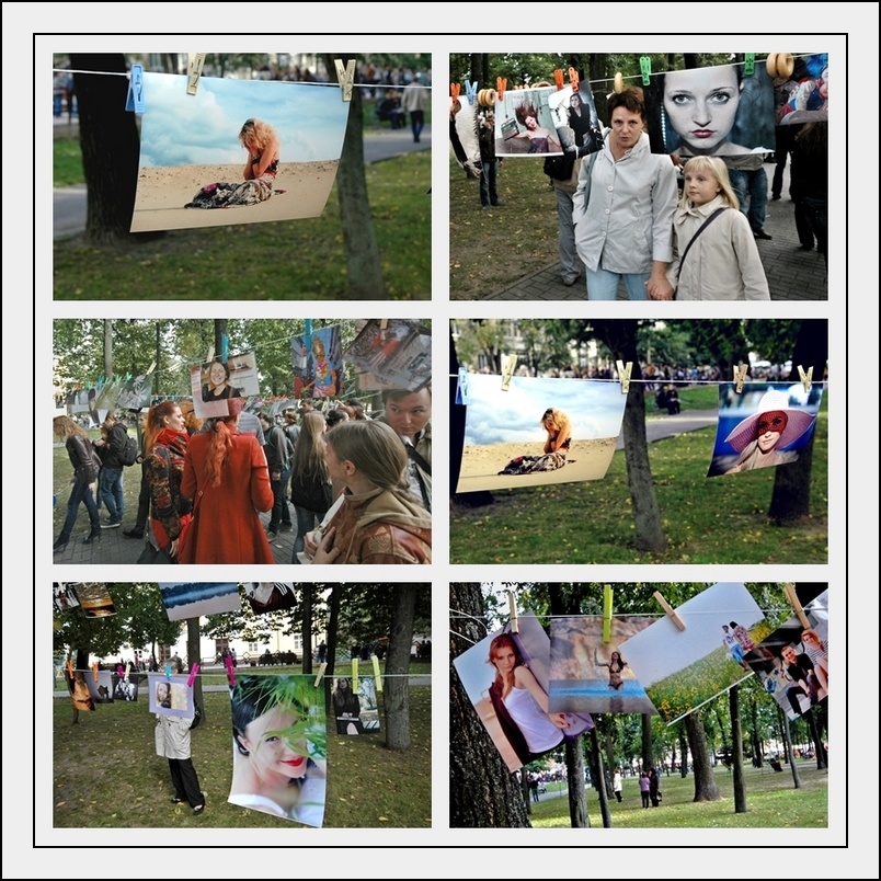 Attraversando il mini-parco fra il ristorante e la strada principale mi trovo davanti a questa mostra collettiva di fotografie all'aperto e mi sembra più che naturale fermarmi un po' ad osservare i lavori proposti da un gran numero di fotografi dilettanti di Gomel.