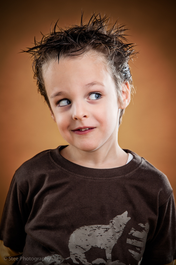 lui è simpaticissimo con quel taglio di capelli sbarazzino e quegli occhietti che sprizzano furbizia. tu, di tuo, ci metti sicuramente maestria in termini di scelta d'illuminazione e di esposizione. mi piace l'idea dello sguardo laterale, ma forse sarebbe stato meglio meno accentuato