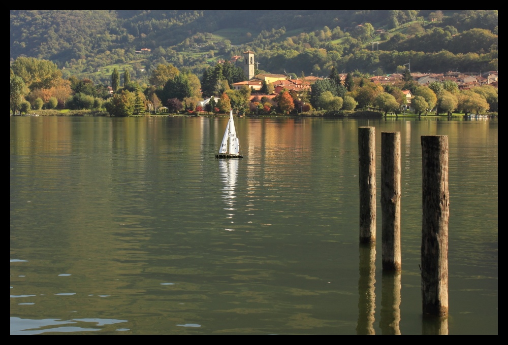 ho inserito i pali per dare profondità, per avere una composizione più accurata avrei forse dovuto aspettare che la barca (radicomandata!) si spostasse più sulla sinistra..