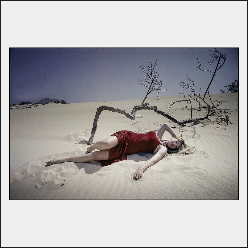 Ho trovato la location particolarmente affscinante ... questo albero cresciuto non si sa come nel ... quasi-deserto, quasi strisciante sulla sabbia con i suoi rami che cercano di alzarsi verso l'alto mi è sembrato avere una valenza in certo qual modo simbolica.