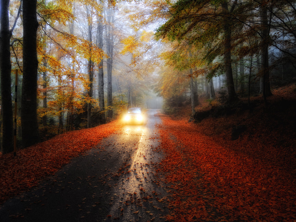 Si colloca quet'immagine nella tua interpretazione iper cromatica dei colori dell'autunno. Il trattamento in post p. Per ottenere una generale morbidezza mi risulta gradevole. La presenza dell'auto, nel mio modo di interpretare il paesaggio, non mi convince ma... Ognuno ha il suo modo, rispettabilissimo, di interpretare le cose.