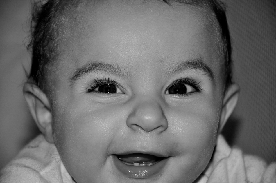 Mi piace il taglio della foto perché mette bene in risalto gli occhioni e il viso simpatico del bebè. Bravo.  _________________ NIKON D3100 - obiettivi Nikkor 18-55 e 55-200 |