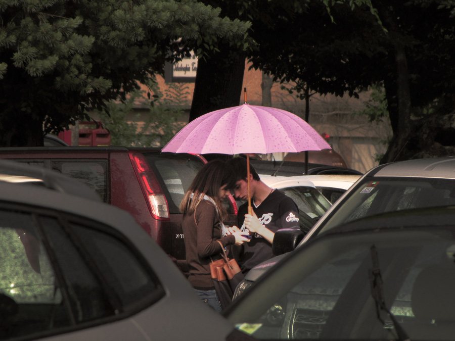molto carina marzai....l'ombrello rosa è un complice perfetto per questa tenera coppia...