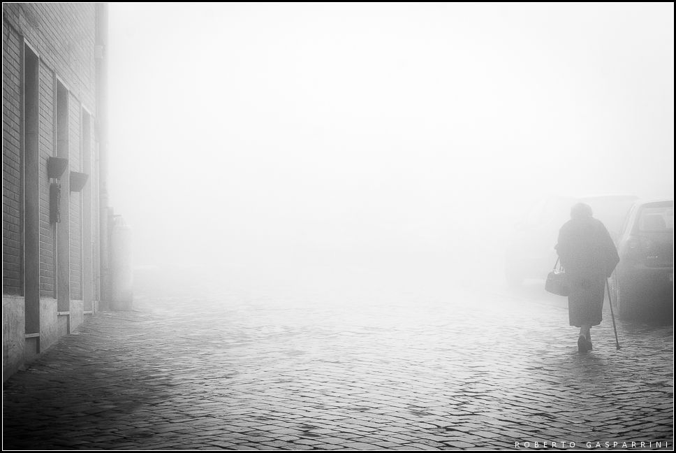 mi piace peccato per le auto, forse se cercavi un inquadratura da dietro la persona riuscivi ad evitarle comunque la nebbia è bella perché crea sempre del mistero ciao Giuseppe  _________________ ' E' un'illusione che le foto si facciano con la macchina... si fanno con gli occhi, con il cuore, con la testa '' Henrì Cartier Bresson